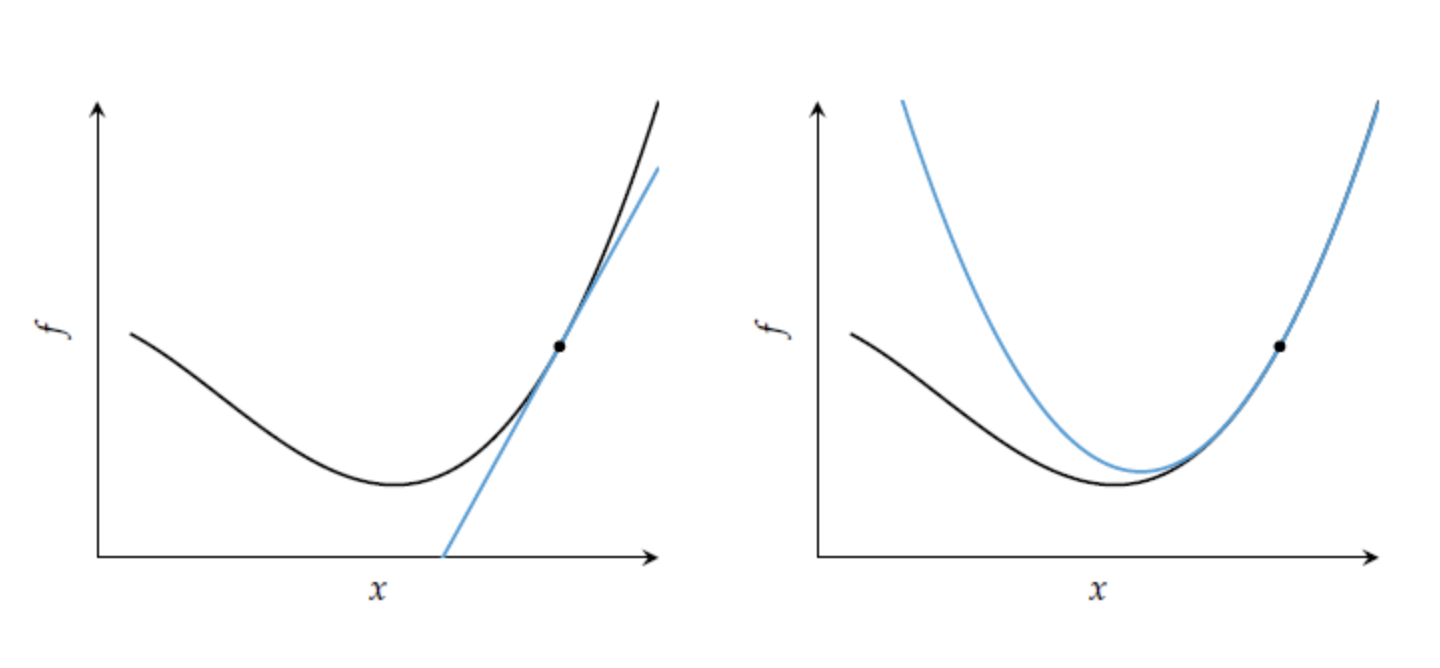 1계 도함수법은 그래디언트를 이용해 목적함수의 1차 근사를 하는 최적화 방법이다. 이에 비해 2계 도함수법은 헤시안 등을 사용해 2차 근사를 이용한다. 1계 도함수법에 비해 많은 정보를 활용