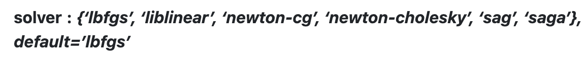 사이킷런이 제공하는 LogisticRegression()의 solver는 다음과 같은것을 확인할 수 있는데